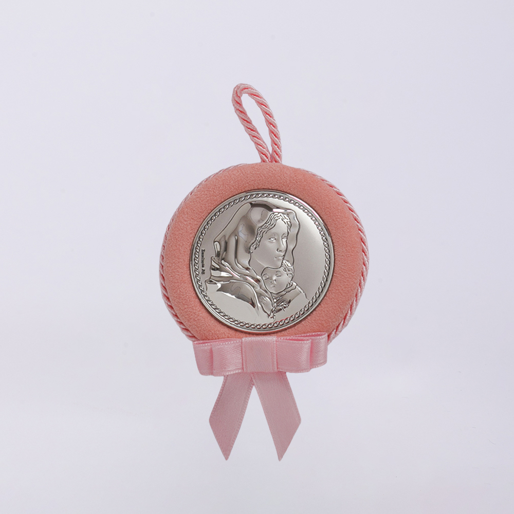 Ασημένια εικόνα της Παναγίας με τον Χριστό, ροζ, σε μικρό μέγεθος