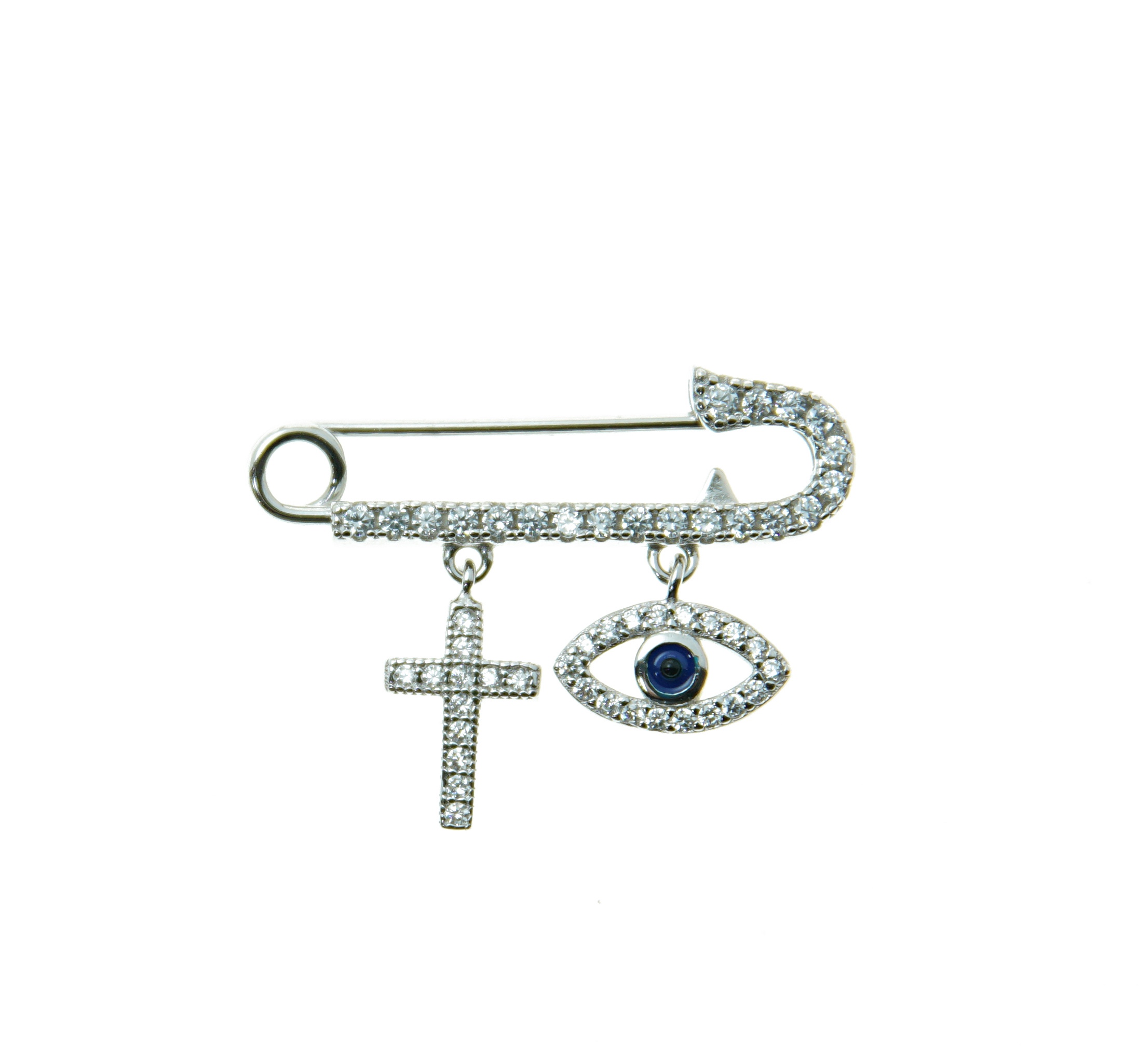 - Ασημένιο φυλαχτό παραμάνα από ασήμι 925 με σταυρό και μάτι, διακοσμημένα με λευκά ζιργκόν, που χαρίζουν διακριτική λάμψη στο κόσμημα και το κάνουν ιδιαίτερο και ξεχωριστό.