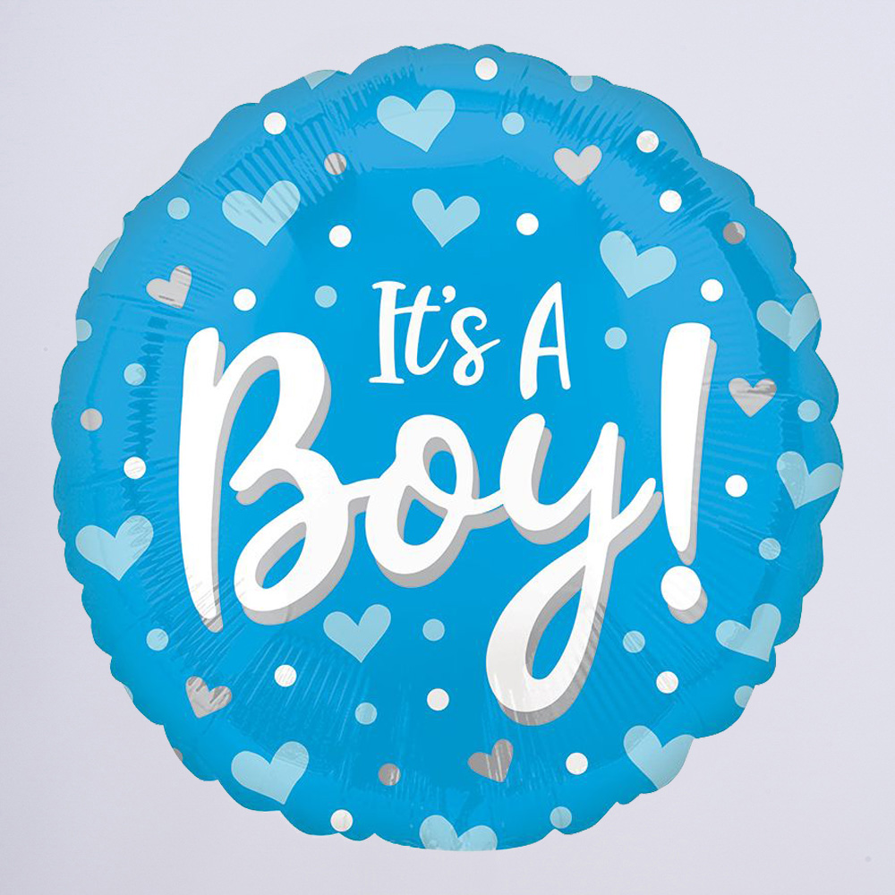 Μπαλόνι ήλιον “It’s a boy” γαλάζιο, με όμορφες καρδούλες, για να καλωσορίσετε το νεογέννητο μπέμπη!