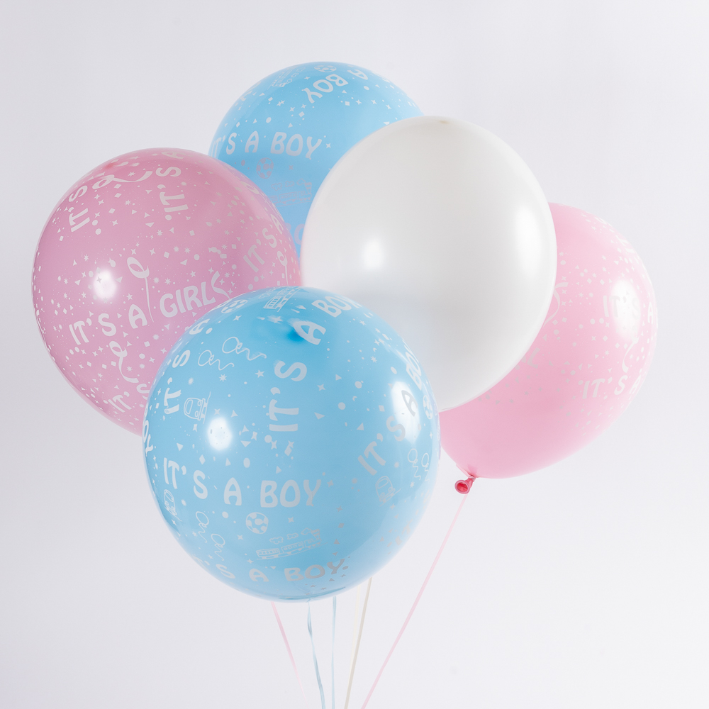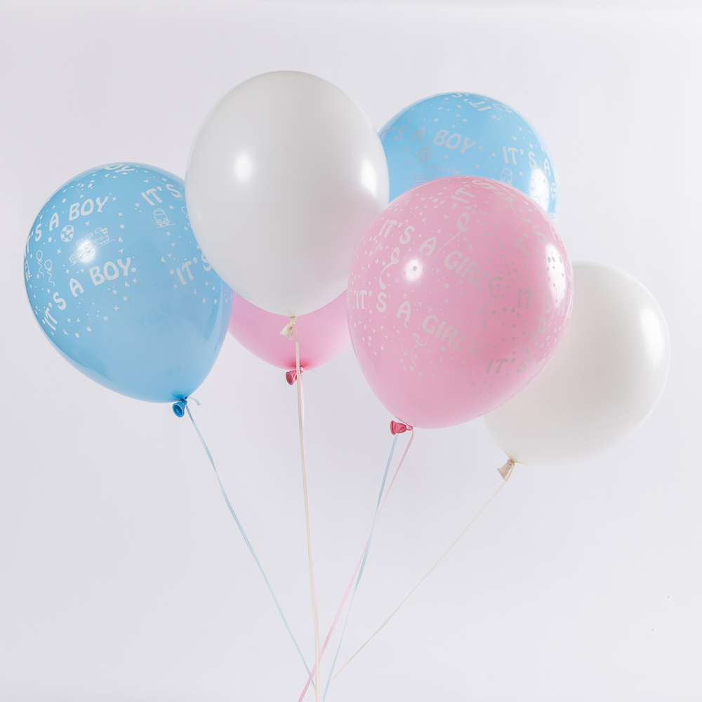 - Δύο ροζ, δύο γαλάζια και δύο λευκά μπαλόνια (εφόσον πρόκειται για κοριτσάκι και αγοράκι)