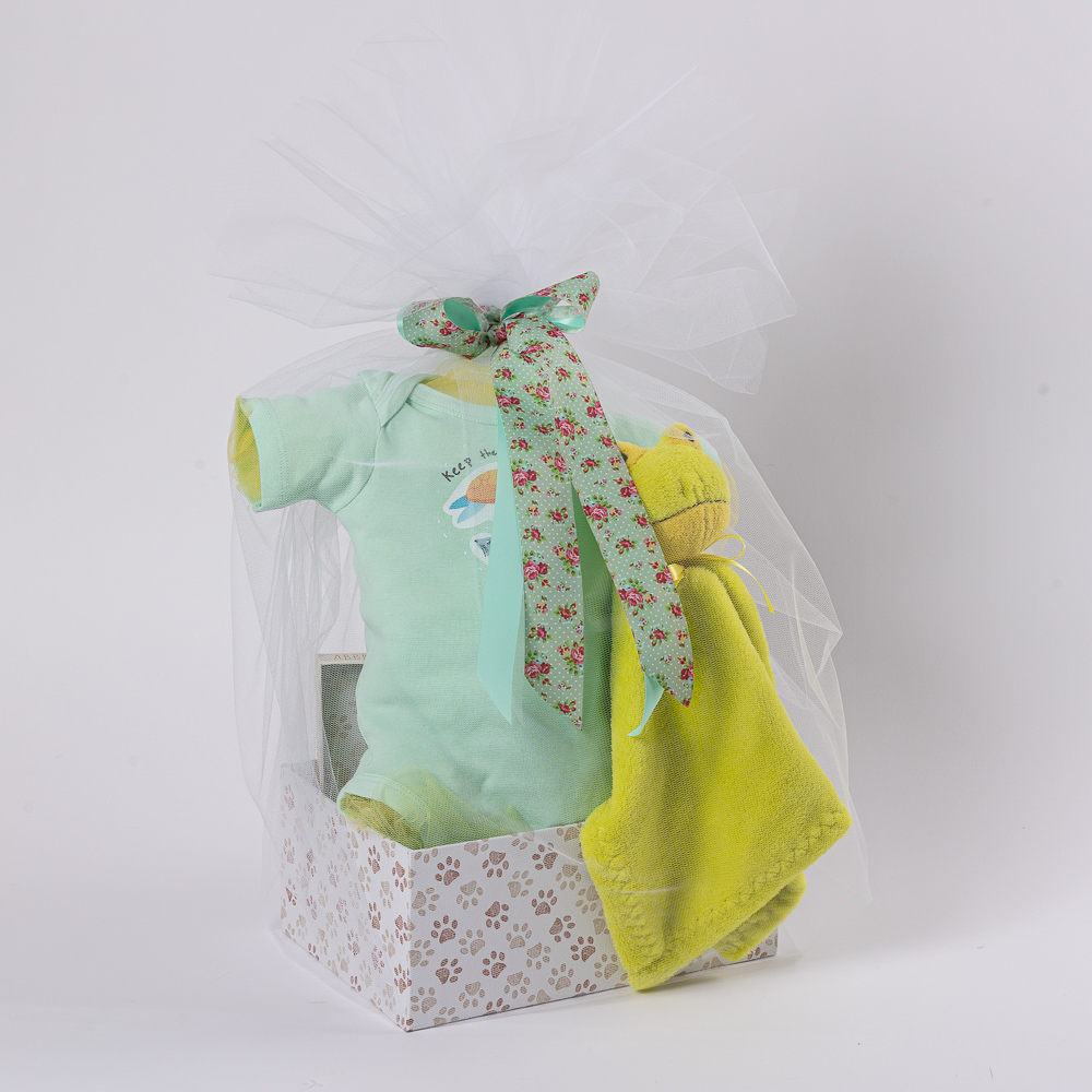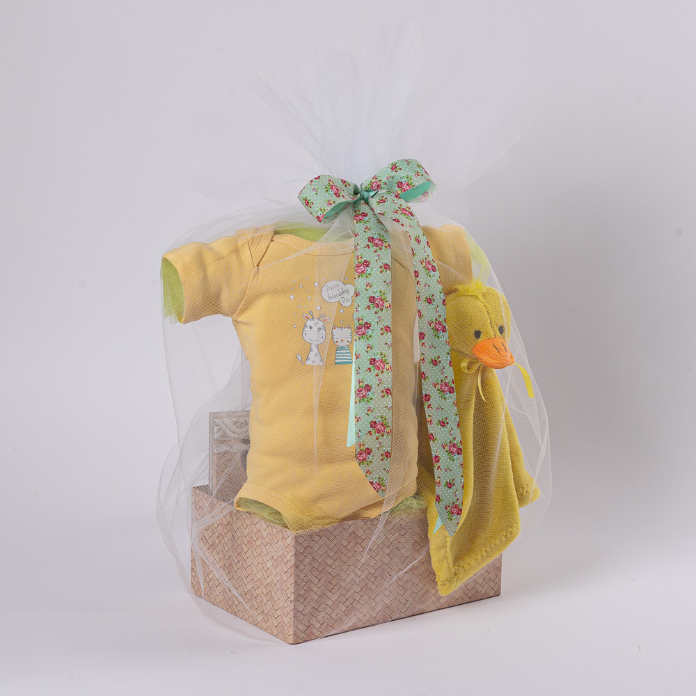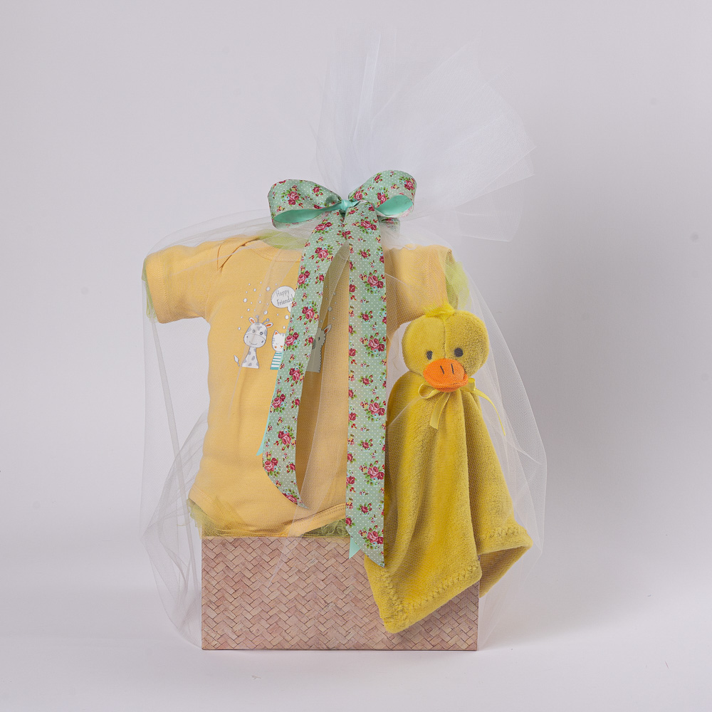 Μια δωροσύνθεση σε όμορφα, ζωηρά χρώματα, που αγαπούν όλα τα νεογέννητα μωράκια!