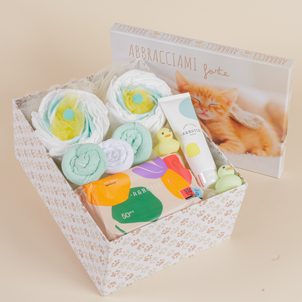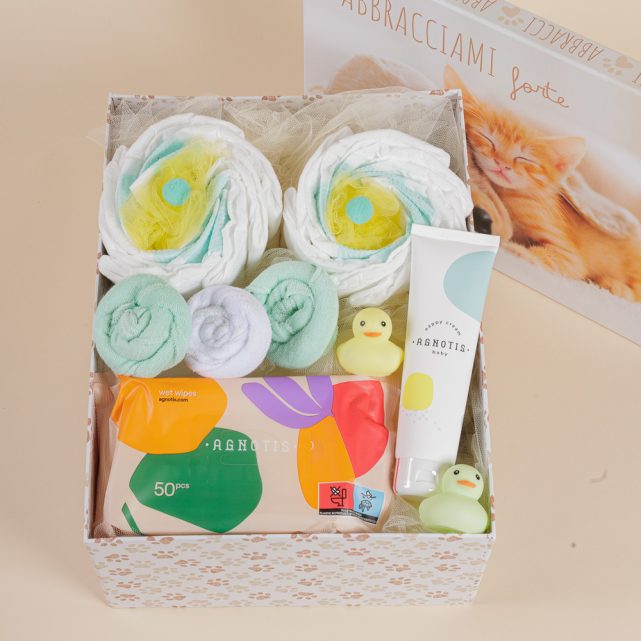 Diaper Cupcakes ή αλλιώς, μικρά κεκάκια από πάνες! Δύο diaper cupcakes φτιαγμένα με τις πάνες που θα χρειαστεί το νεογέννητο τις πρώτες ημέρες στο σπίτι, σε μια δωροσύνθεση με όλα τα απαραίτητα για την αλλαγή της πάνας. Με τη φροντίδα των Babyline και την εξαιρετική ποιότητα των προϊόντων της Agnotis!