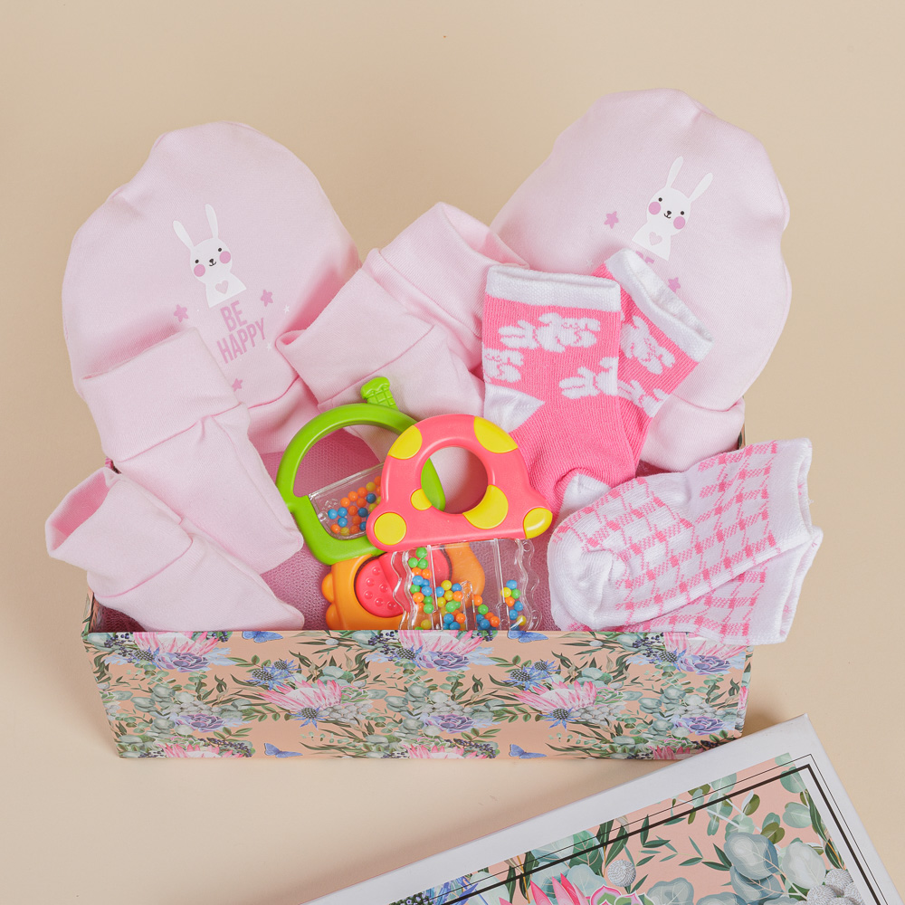 - Δύο σετ σκουφάκι & γαντάκια Babyline, 100% βαμβακερά, σε ροζ χρώμα.