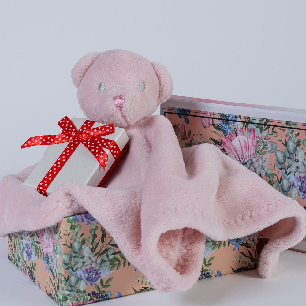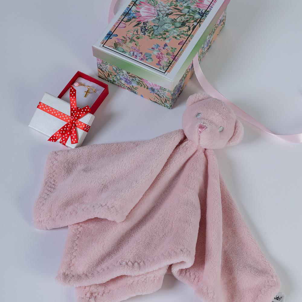 • Βαμβακερό πανάκι παρηγοριάς σε ροζ χρώμα,  που καθησυχάζει το νεογέννητο και του χαρίζει μία αίσθηση ασφάλειας και παρηγοριάς, μέχρι να αποκοιμηθεί.