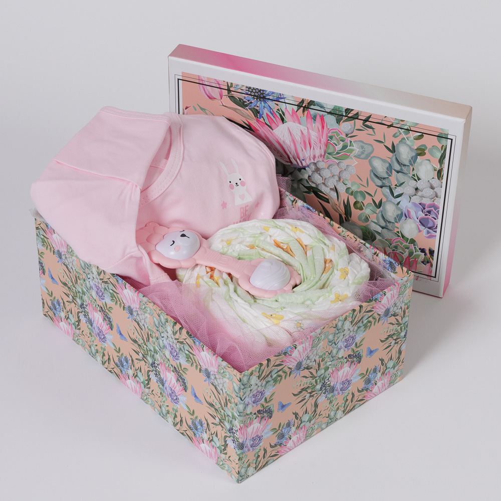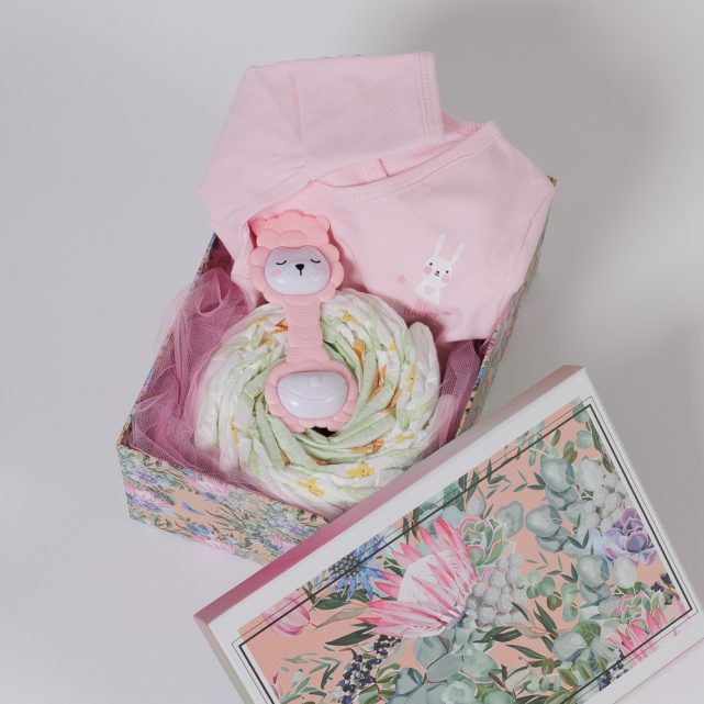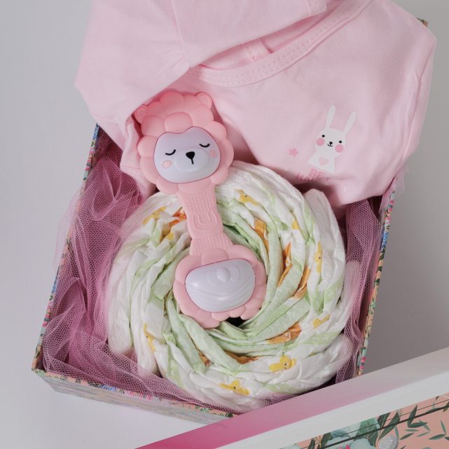 - Mini Diaper Cake με τις πάνες που θα χρειαστεί το νεογέννητο τα πρώτα 24ωρα στο σπίτι (9τμχ).