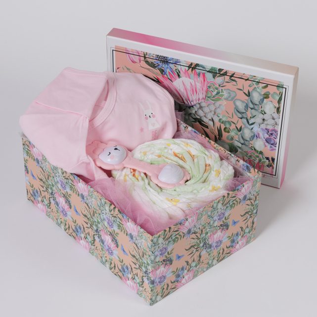 Προσθέστε ένα ή περισσότερα μπαλόνια στο κουτί της δωροσύνθεσης! Ή στολίστε την με ένα χρωματιστό ταμπελάκι it’s a girl!