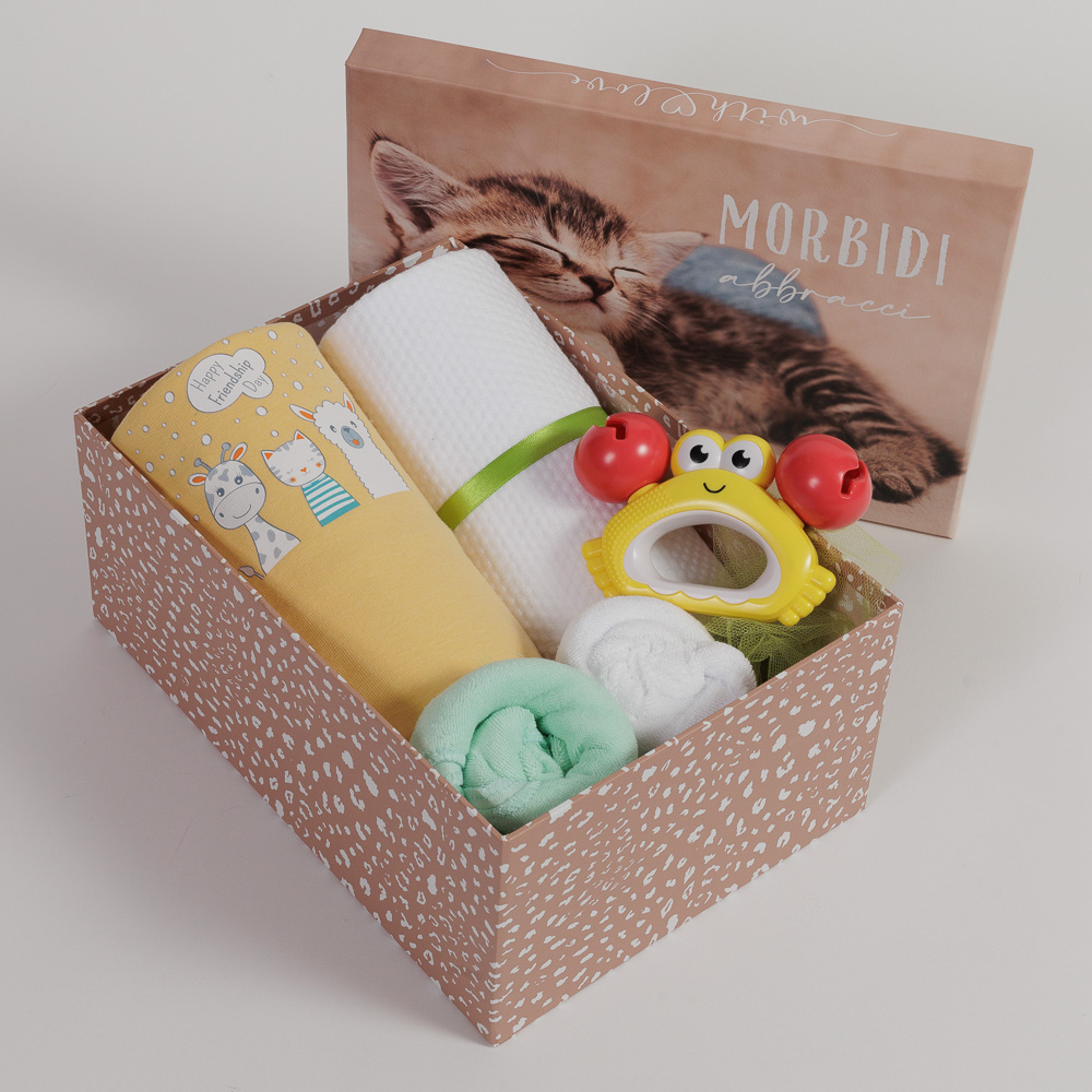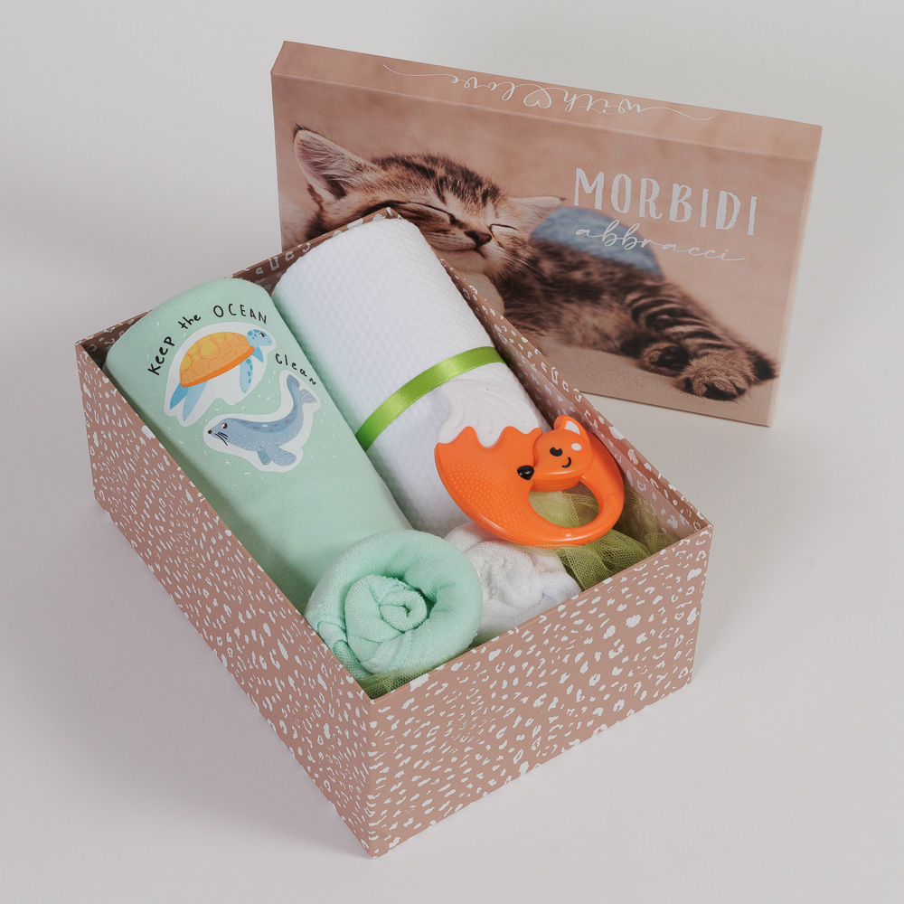 Ένα κουτί γεμάτο με όμορφα, χρηστικά δώρα για να καλωσορίσετε τη νέα ζωούλα!
