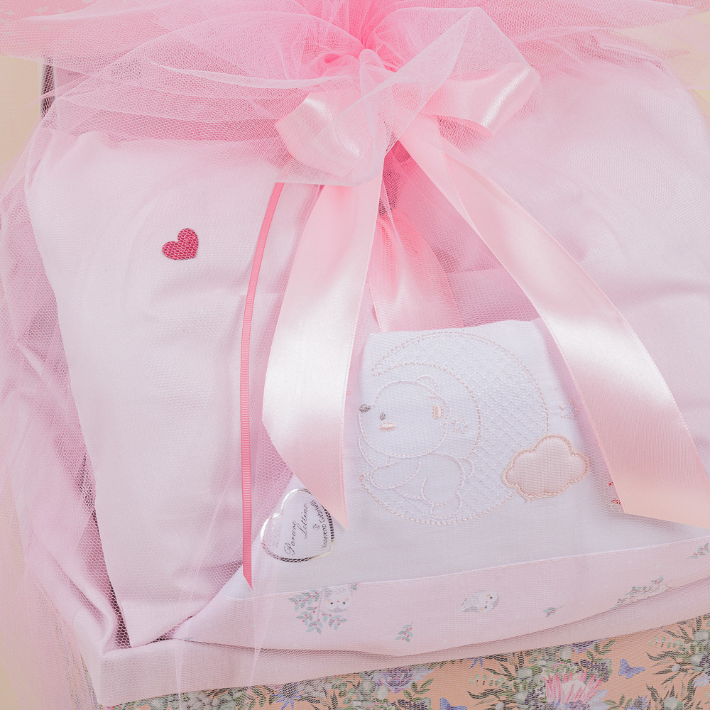 - Σετ σεντόνια για την κούνια, βαμβακερά, με ροζ λεπτομέρειες.