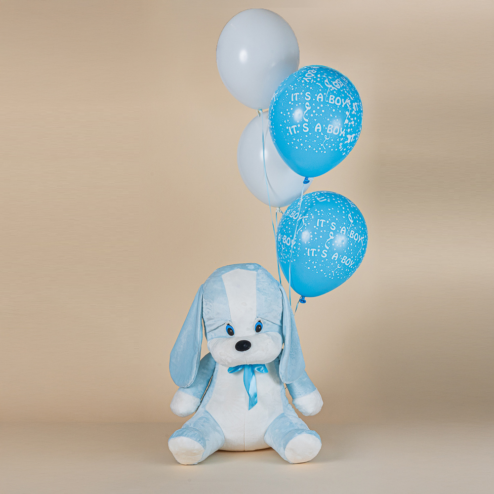 Καλωσορίστε τον νεογέννητο μπέμπη με τον Πόλντο, τον αγαπημένο λούτρινο σκυλάκο των Babyline που κρατά ένα παιχνιδιάρικο μπουκέτο από γαλάζια και λευκά μπαλόνια, έτοιμος να σκορπίσει ευχές κι αγκαλιές!