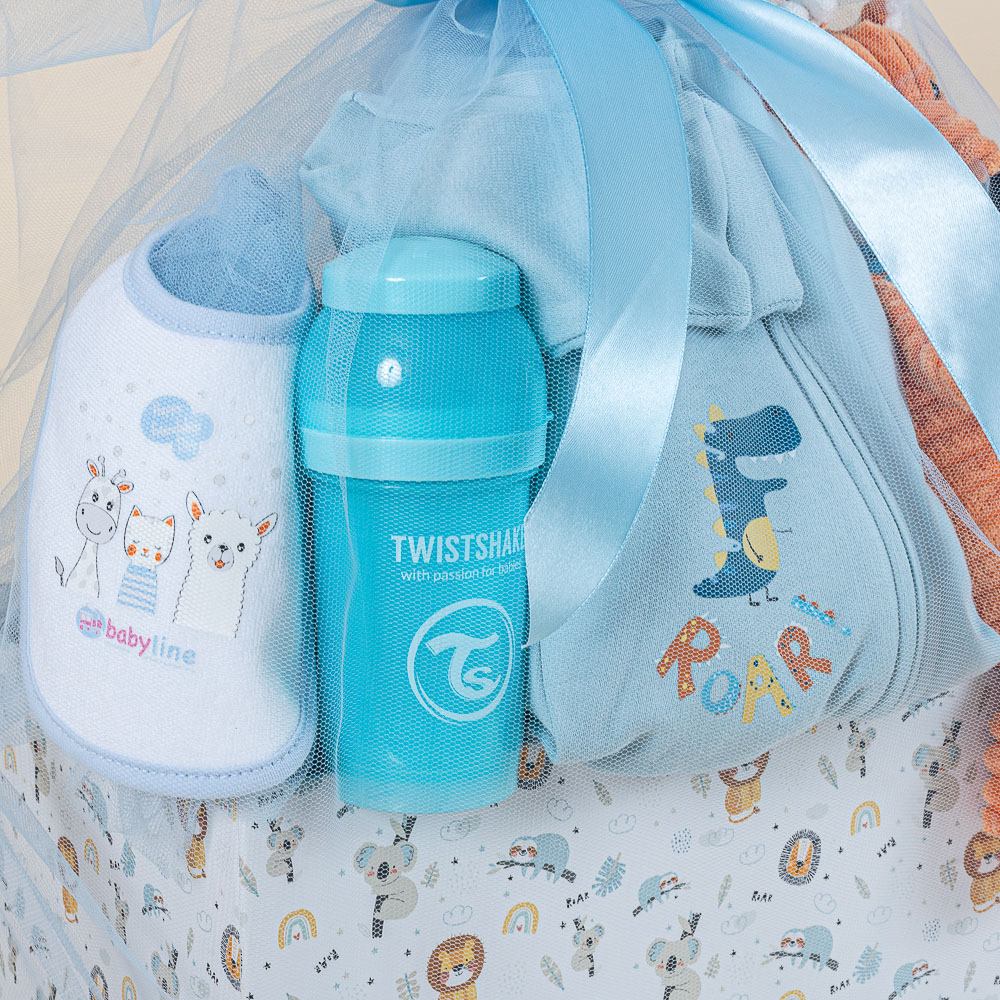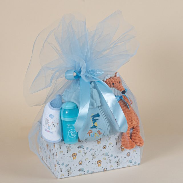Μία ξεχωριστή δωροσύνθεση, γεμάτη όμορφα δώρα για το νεογέννητο μπέμπη!