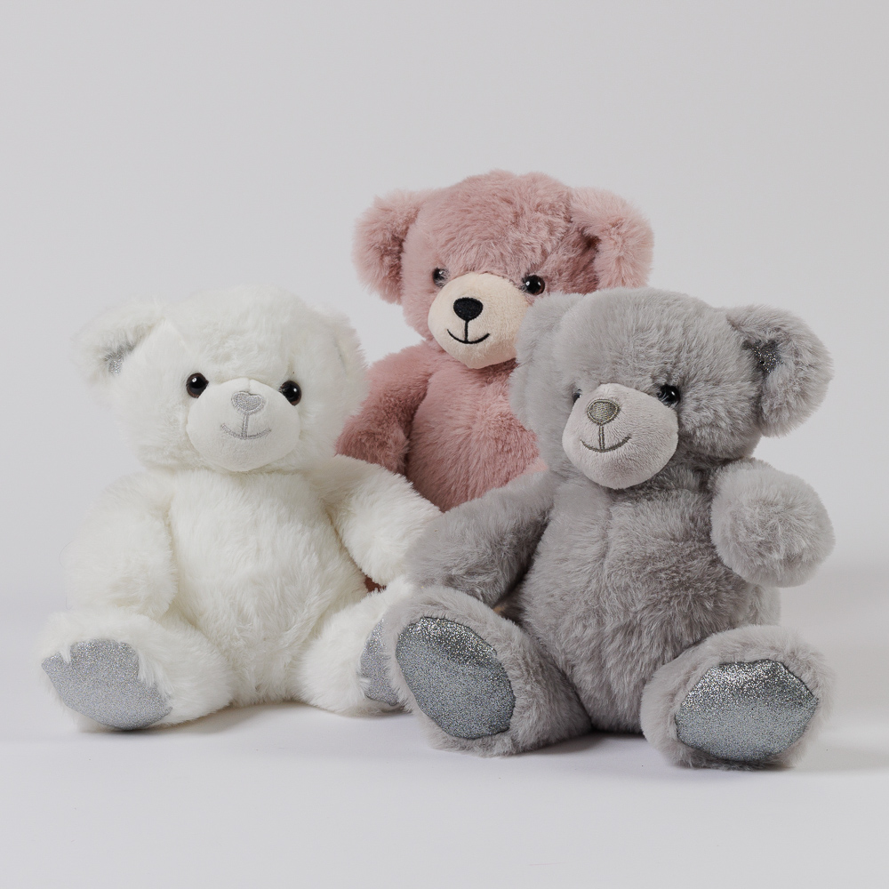 - Λούτρινο αρκουδάκι Glitter Paws, με πατουσάκια που στραφταλίζουν, σε ροζ, λευκό ή γκρι χρώμα.