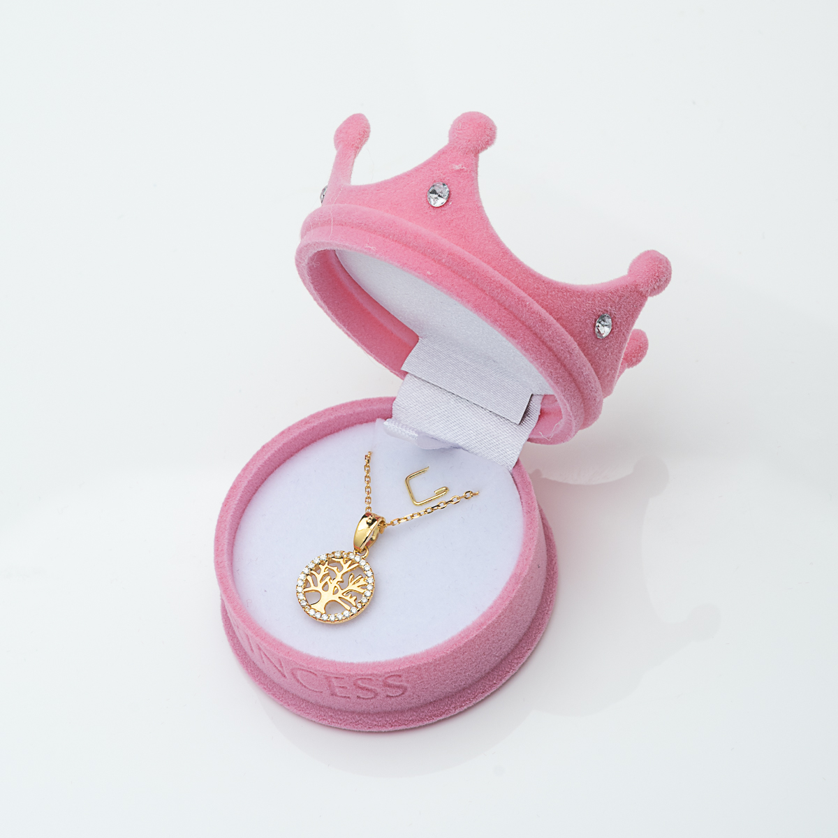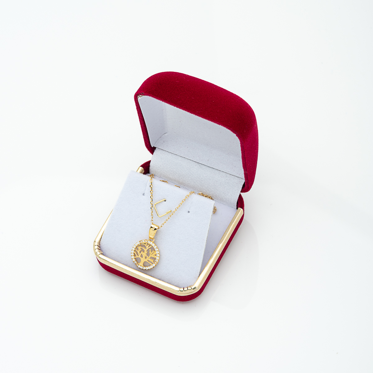 Κόσμημα σε ασήμι 925, στην ζεστή απόχρωση του χρυσού: Το Δέντρο της Ζωής – σύμβολο γέννησης και νέων αρχών – στολισμένο περιμετρικά με λαμπερές πέτρες ζιργκόν, κρεμασμένο σε αλυσίδα με αυξομείωση, για τέλεια εφαρμογή σε κάθε λαιμό.