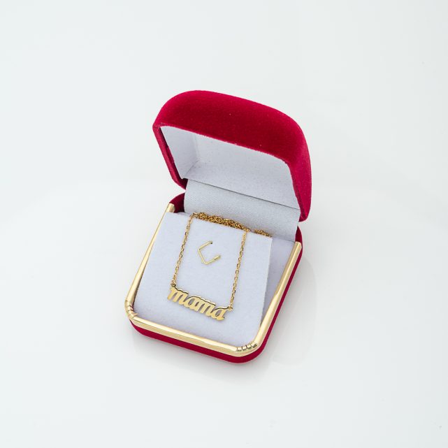 - Ασημένιο κρεμαστό κόσμημα mama με επιμετάλλωση σε yellow gold, φιλοτεχνημένο σε αλυσίδα με δυνατότητα αυξομείωσης, για τέλεια εφαρμογή.