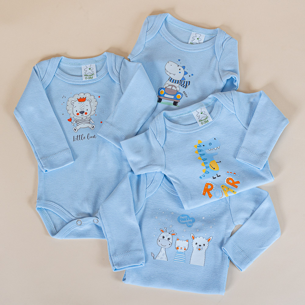 - Κορμάκι με μακρύ μανίκι, 100% βαμβακερό, για βρέφη έως 3 μηνών, σε γαλάζιο χρώμα.