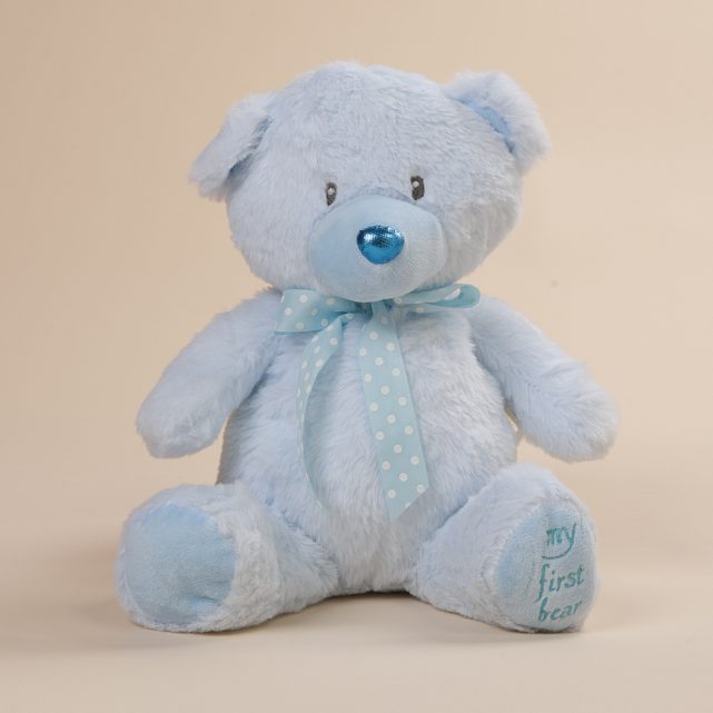 - Το λούτρινο αρκουδάκι “My First Bear” σε γαλάζιο χρώμα με τη γυαλιστερή μυτούλα, διαθέτει εξαιρετικά απαλή υφή και είναι ιδανικό για τρυφερές αγκαλιές από τις πρώτες κιόλας ημέρες του μωρού.