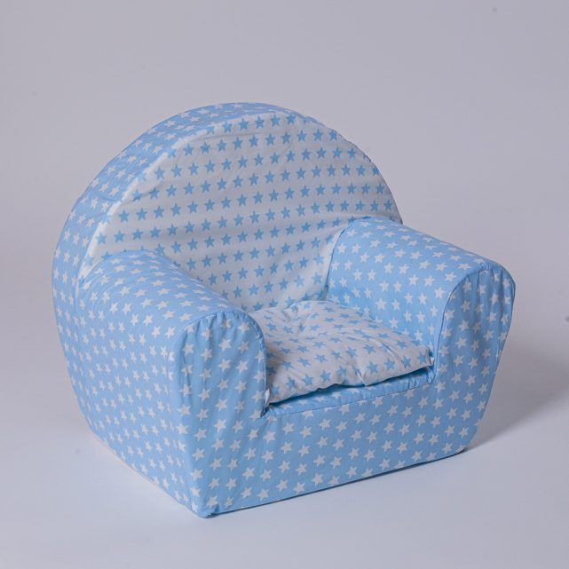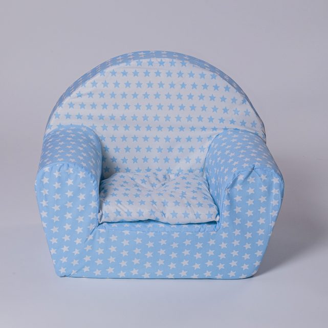 - Μαλακή και άνετη παιδική πολυθρόνα με αστεράκια σε γαλάζια απόχρωση, με κάλυμμα που αφαιρείται και πλένεται.