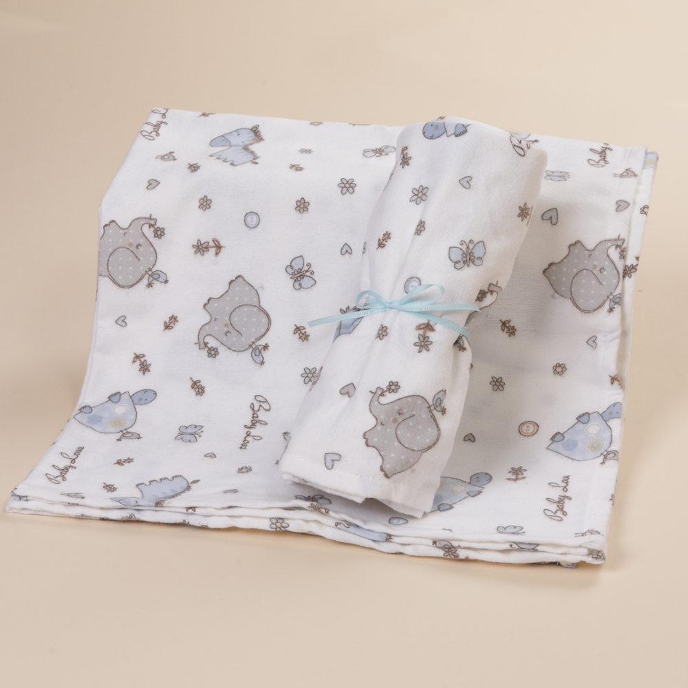 - Βρεφική πάνα αγκαλιάς φανέλα, σε γαλάζιες αποχρώσεις με όμορφα παιδικά σχέδια. Κατασκευασμένη από 100% βαμβακερό φανελένιο ύφασμα 144 κλωστών, διαθέτει εξαιρετικά απαλή υφή και προσφέρει γλυκιά αίσθηση ασφάλειας στο μωράκι σας.