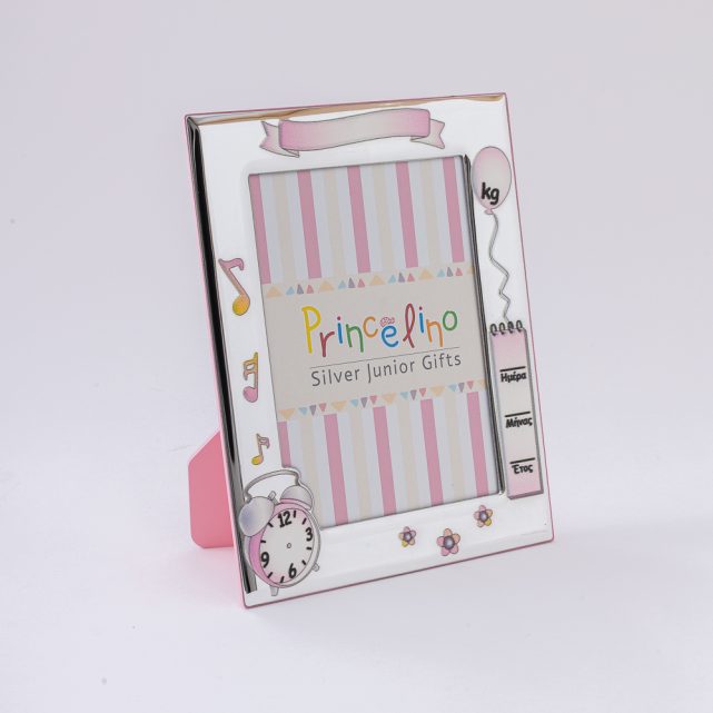 - Κορνίζα “Birthday Data” σε μικρό μέγεθος σε ασήμι 925 στην οποία μπορείτε να γράψετε με ανεξίτηλο μαρκαδόρο το όνομα, την ώρα, την ημέρα και τα κιλά που γεννήθηκε η μπέμπα. Για φωτογραφίες 9×13εκ.