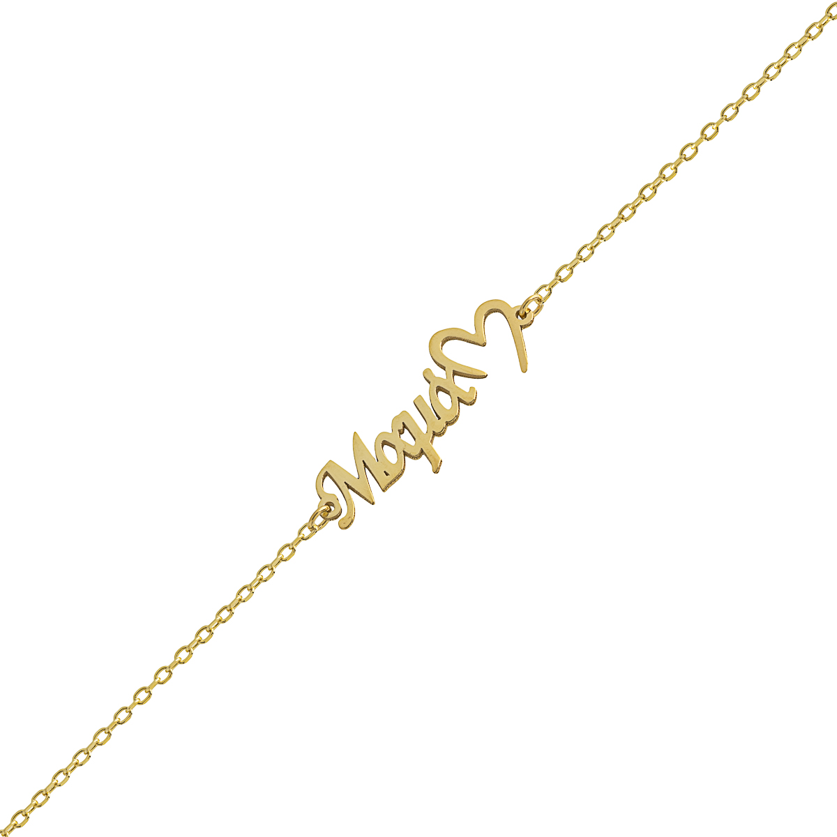 Βραχιόλι “Μαμά” σε ασήμι 925 στην όμορφη απόχρωση του χρυσού, με κομψή ανοιχτή καρδιά στο τελείωμα. Ένα διακριτικό και γεμάτο συναίσθημα κόσμημα, ιδανικό για να τιμήσει τη νέα μανούλα.