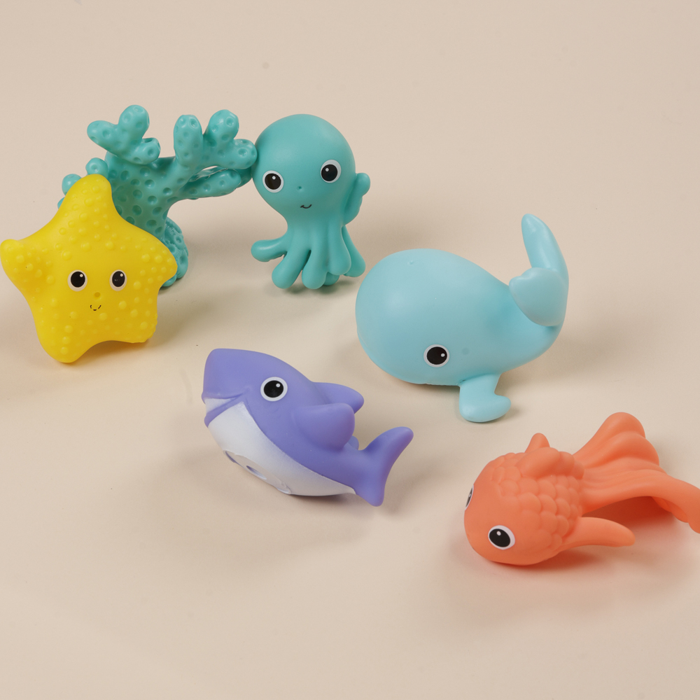 - Βρεφικά παιχνίδια μπάνιου θαλάσσια ζωάκια, σε υπέροχους παιδικούς χρωματισμούς.